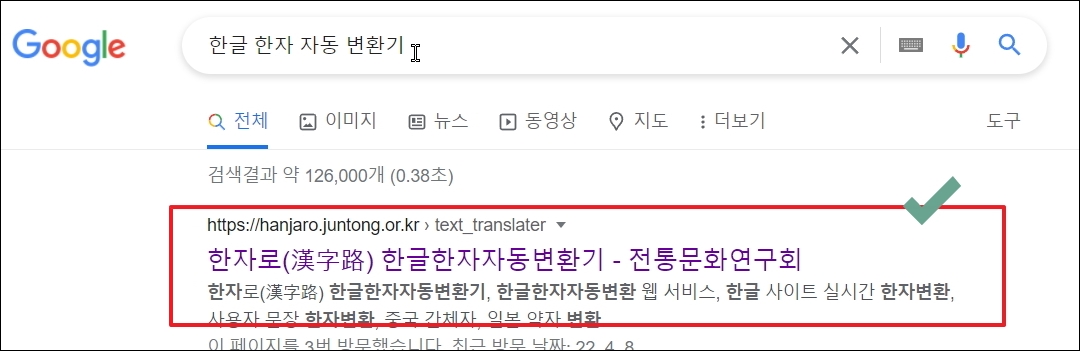 ▼첫 번째는 전통문화연구회에서 운영하고 있는 프로그램을 이용한 방법입니다. 당연히 무료로 이용할 수 있고, 사용법이 정말 쉽습니다. "한글 한자 자동 변환기" 검색을 통해 해당 웹사이트에 빠르게 접속이 가능합니다.