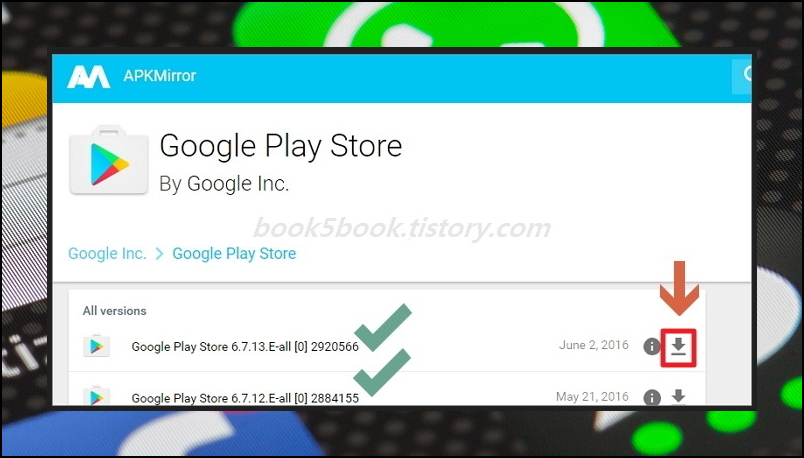 이럴때도 플레이스토어를 다운로드를 똑같이 받고, 재설치를 해주시면 되는데요. 최신버전으로 설치했을때 안되는 경우가 있습니다. 이럴때는 다른 버전도 마련되어 있으니 돌아가며 설치해보시는 것을 추천드립니다. 그럼 같이 보시죠~