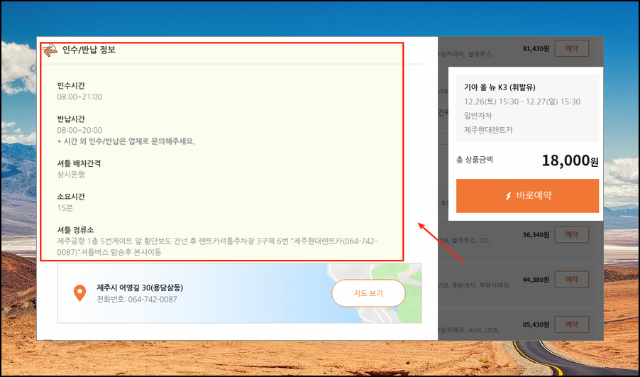 티몬 사이트에서 온라인으로 바로 예약을 진행할 수 있는데요. 인수시간, 반납시간, 정류소 등의 정보는 기본적으로 알고 있어야 해요. 그래야 수월하게 렌트카를 이용할 수 있어요.