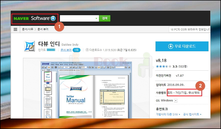 HWP는 아래한글의 전용 문서파일인데요. 유료 프로그램이기 때문에 설치해서 사용하시는 분들이 많지 않습니다. 이럴 때는 네이버 소프트웨어 사이트에서 무료로 다운 받을 수 있는 '다뷰 인디'로 파일을 여시면 되는데요. 문제를 수정할 일은 없으니까 읽기모드만 되어도 상관없습니다.