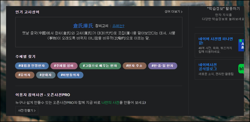 국내 주요 포털인 네이버와 다음에서 제공하는 한자 사전 서비스가 있습니다. 두 플랫폼 모두 그려서 한자자찾기 기능을 지원하고 있는데요, 오늘은 네이버 사전을 기준으로 상세히 알아보도록 하겠습니다.