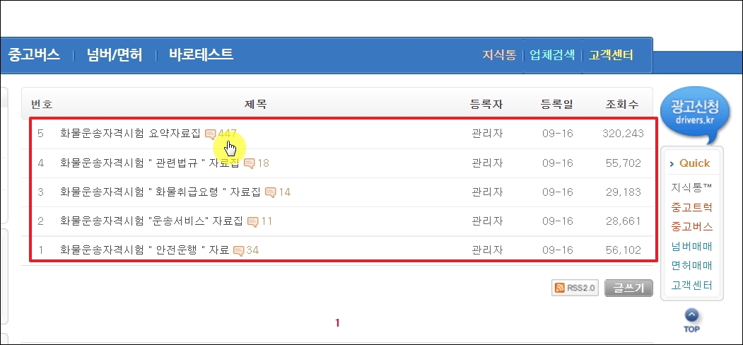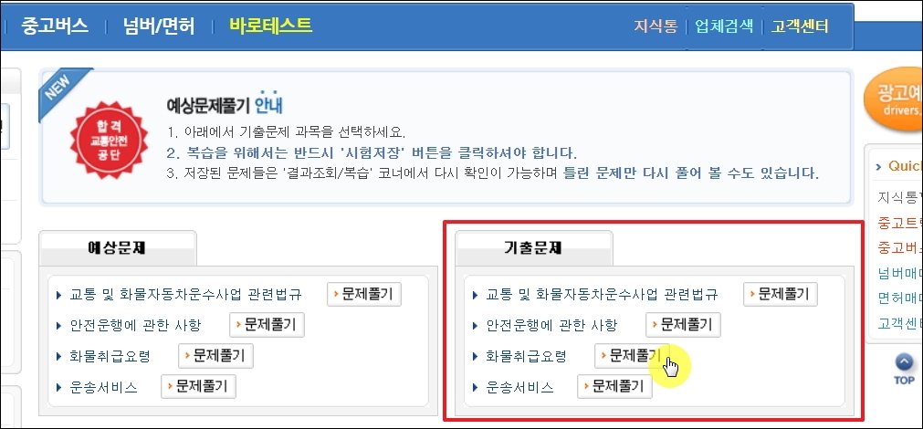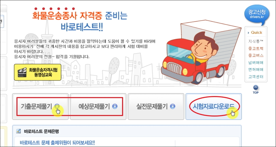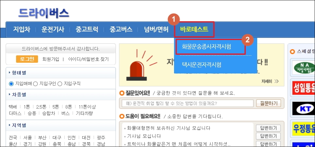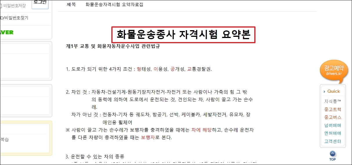 ▼그럼 본격적으로 화물운송자격증 기출문제와 요약집을 이용하는 방법을 알려드리겠습니다. 운송 업무에 종사하는 분이라면 익히 들어보았거나 방문을 한 적이 있는 드라이버스 사이트를 이용하면 됩니다.