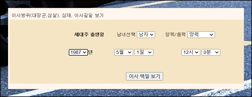 정확한 결과를 얻기 위해서는 세대주의 생년월일시를 정확하게 입력해야 합니다. 모든 정보를 기입한 후 이사 택일 보기를 선택하면 이사방향에 대한 상세 정보를 얻을 수 있어요.