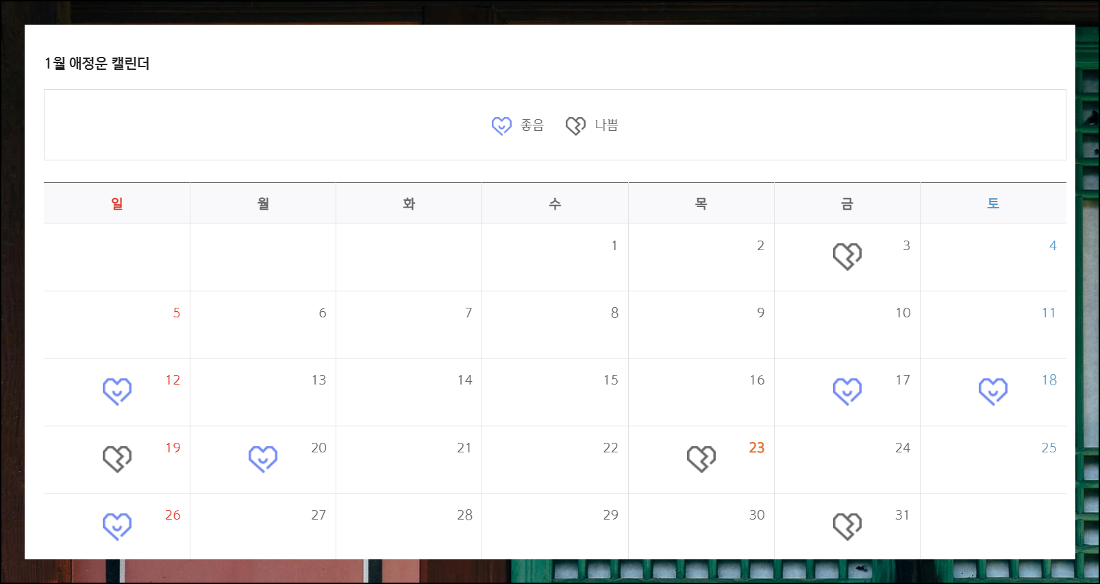 로그인 없이도 평생운부터 월간운까지, 다양한 서비스를 편리하게 이용하실 수 있습니다. 캘린더 형식의 직관적인 인터페이스로 누구나 쉽게 이용할 수 있어요.