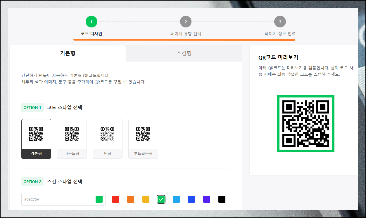 안내에 따라 기본정보, 추가 정보를 입력하면 쉽게 코드를 만들 수 있어요. 문구, url, 주소, 전화번호, 와이파이 비밀번호 등 다양한 항목이 나오는데요. 빈 칸에 내용만 넣으면 QR코드를 만들 수 있어요.