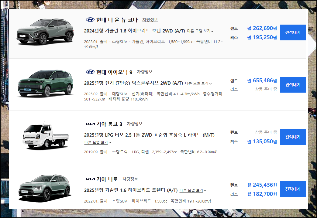 | 자동차 리스 가격표 정확히 살펴보기 (1) | 2025.04.25 |