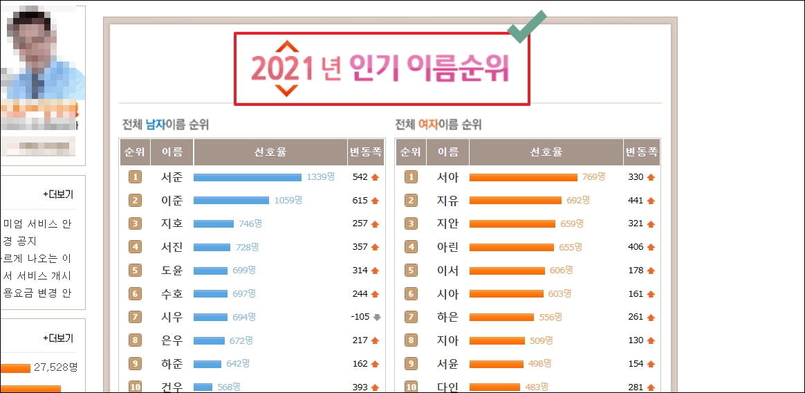 | 아기 이름 순위 확인하기 (올해 2022년 선호도 포함) (0) | 2022.06.30 |