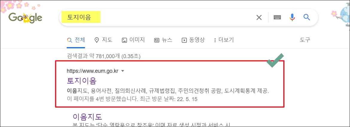 ▼그럼 공공기관 사이트인 토지이음에서 어떻게 토지이용계획확인원 무료열람을 진행하는지 알려드리겠습니다. 검색을 통해 공식 홈페이지에 접속합니다.
