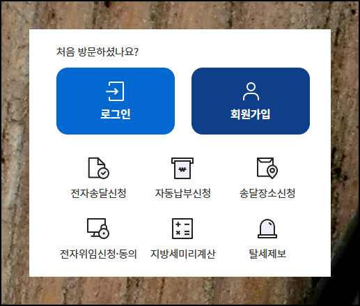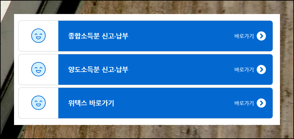 부동산 관련 취등록세는 지방세에 포함되므로 위텍스 포털에서 확인하셔야 합니다. 이곳에서 모든 지방세 관련 업무를 한 번에 처리할 수 있어요. 지금은 세금 신고 기간이기 때문에 사이트 접속 시 나타나는 바로가기 버튼에서 3번째를 선택하면 됩니다.