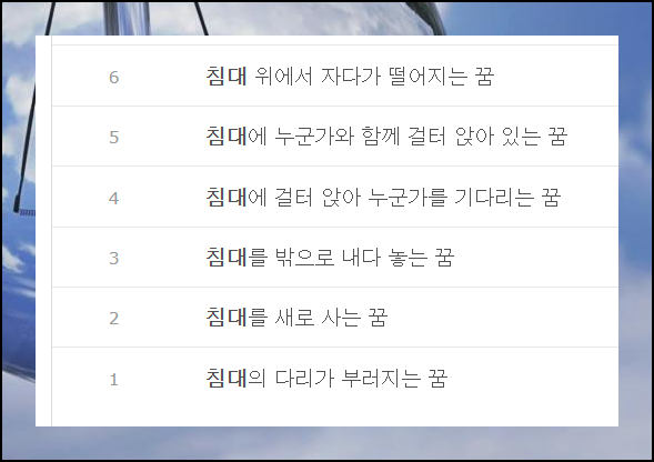 | 다음 무료 꿈해몽 풀이 사이트 길라잡이 (2) | 2024.12.11 |