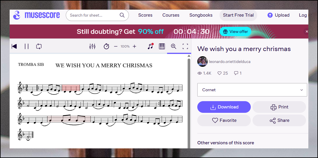 크리스마스 관련 곡을 예로 들어보죠. 검색 결과가 너무 많아도 악기 필터를 사용하면 내가 연주할 수 있는 것만 쏙쏙 골라낼 수 있습니다. 마음에 드는 곡을 발견했다면 클릭해서 자세한 내용을 확인해보세요.