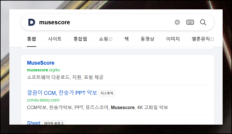 인터넷 검색은 신뢰할 수 있는 방법을 사용해야 합니다. 검색엔진에서 'musescore'를 영어로 검색해보세요. 그럼 공식 사이트를 쉽게 찾을 수 있어요.