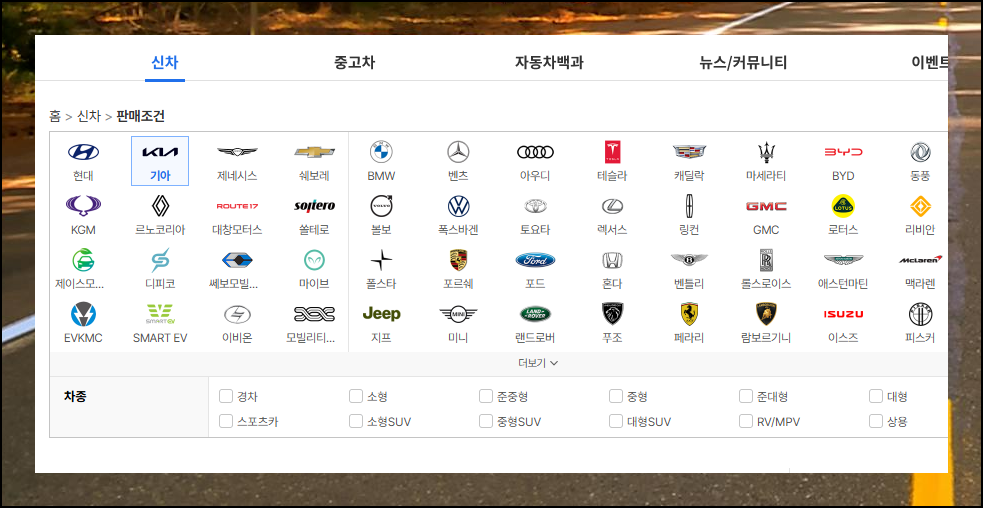 한국 자동차에서 출시하는 모델 종류가 상당히 많기 때문에 전체 목록을 한 번에 살펴보기보다는 관심 있는 차종 카테고리를 먼저 선택하는 것이 효율적이에요. 경차부터 시작해서 상용차, 소형차, 준중형, 중형차까지 세분화된 선택 옵션이 준비되어 있답니다.