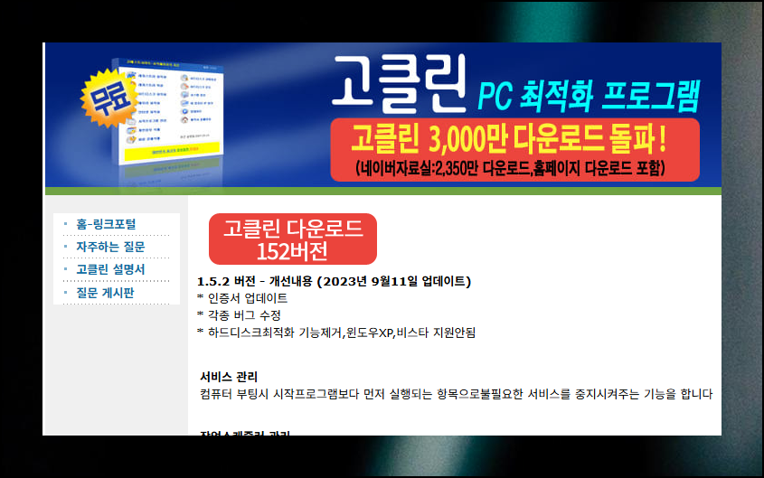 고클린은 비용 부담 없이 사용할 수 있는 종합 PC 관리 프로그램이에요. 고베스트 공식 웹사이트를 통해 설치 파일을 손쉽게 받을 수 있습니다. 인터넷 속도가 느려요 하는 문제 외에도 다양한 최적화 기능을 제공해요. 시스템에 쌓인 임시 파일들을 깔끔하게 정리하고, 메모리 사용량도 효율적으로 관리해줍니다.