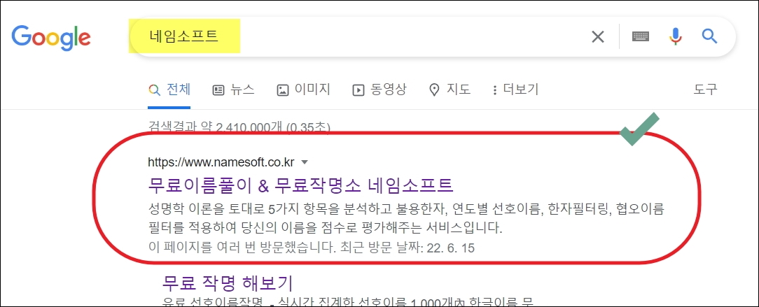▼방금 보신 순위와 함께 300개의 남자 이름 모음을 살펴볼 수 있는 사이트가 있습니다. 바로 네임소프트 입니다. 이곳에서는 무료로 풀이를 해주거나 작명 서비스를 제공하고 있습니다. 유료 서비스도 있지만, 많은 이름을 살펴보는 데에는 무료 버전으로도 충분합니다.