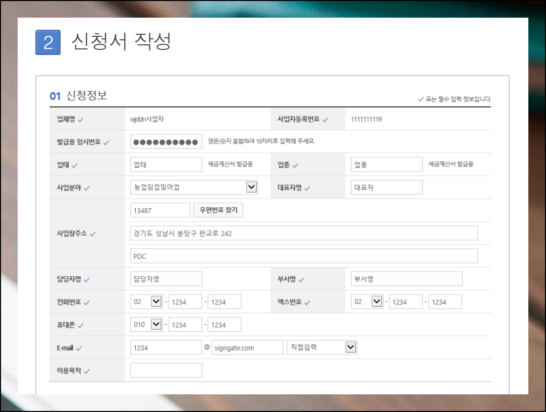 공인인증서 재발급을 위해서는 다양한 개인정보가 필요합니다. 전용 비밀번호부터 업종, 대표자명, 사업장 주소, 담당자명, 연락처, 휴대폰 번호, 이메일 주소, 사용 목적까지 정확하게 기재해야 해요.