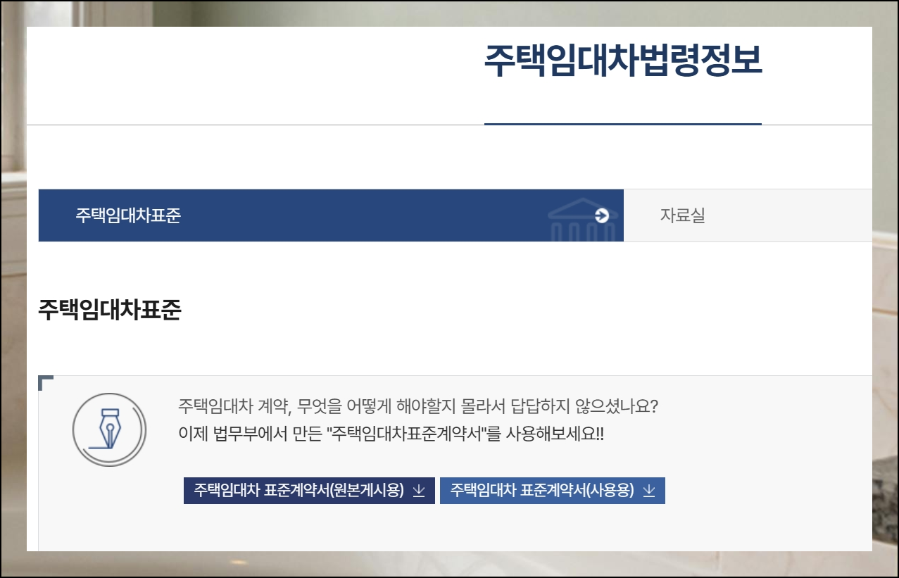 화면이 전환되면 두 가지 선택 옵션이 나타날 거예요. 일반 주택인 아파트나 빌라를 임대하려는 분들께는 주택 임대차 법령정보를 추천드립니다. 여기서 월세계약서 무료 양식을 확인하고 다운받을 수 있어요. 반면에 상업용 건물이나 점포를 임대하시려는 분들은 상가건물 임대차 법령정보를 선택하시면 됩니다. 용도에 따라 적용되는 법령이 다르기 때문에 본인의 상황에 맞는 메뉴를 정확히 선택하는 것이 중요해요.