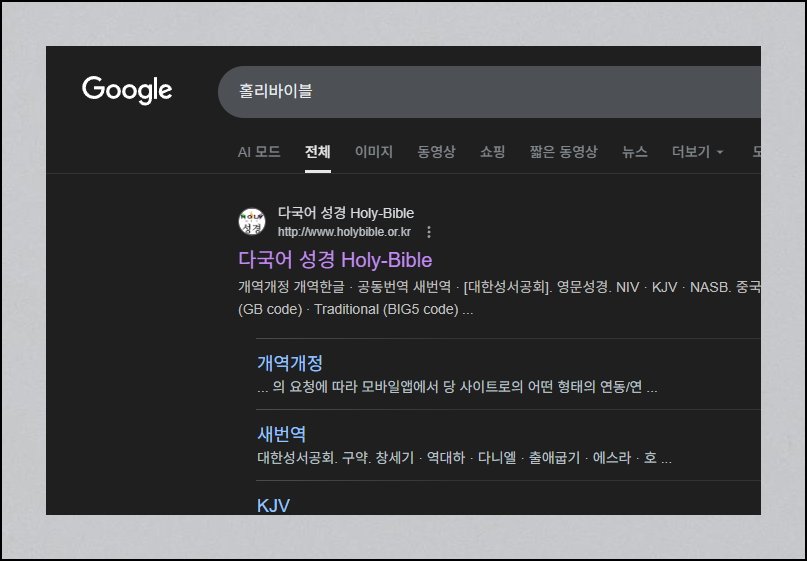 | 영어 성경구절 찾기, 한영 검색방법 (0) | 2025.03.14 |
