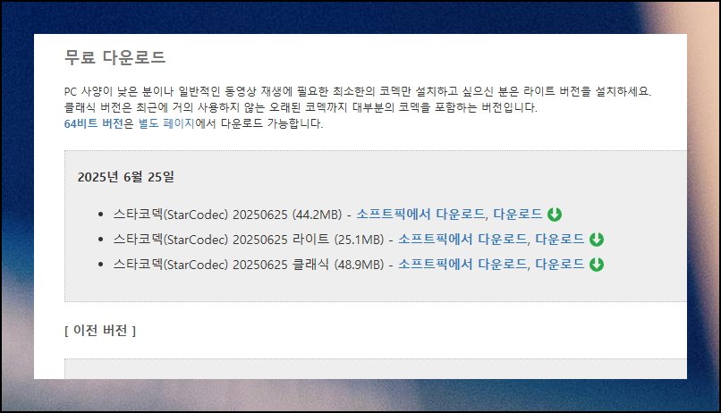 파일 다운로드 페이지에서는 3가지 설치 옵션 중 선택할 수 있어요. 일반 사용자라면 기본 버전이 가장 적합합니다. 컴퓨터 성능이 부족하거나 용량이 걱정된다면 라이트 버전을 선택하는 게 좋아요. 클래식 버전도 있지만 곰플레이어에서 재생 문제가 지속적으로 발생할 때만 고려해보세요.