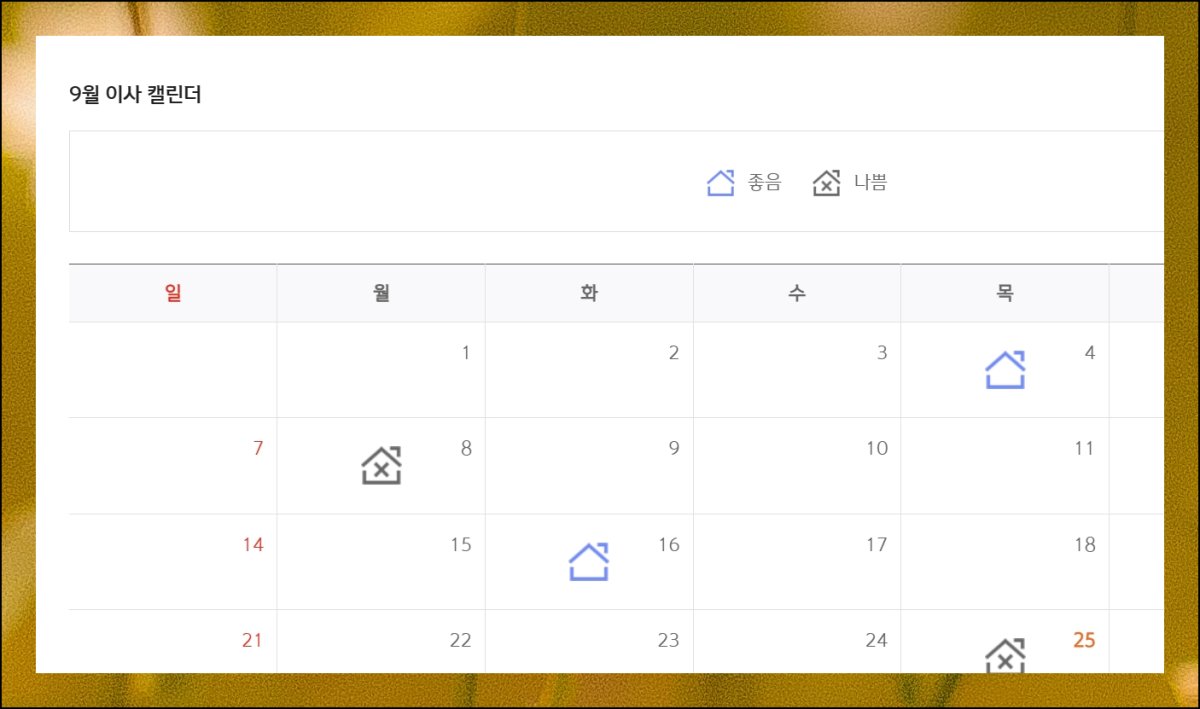 신한은행 무료운세 바로가기를 통해 취업이나 승진에 관한 달력, 사업 운영시 참고할 만한 달력, 이사할 때 도움이 되는 달력까지 만나볼 수 있어요. 이사 달력은 일반적인 손 없는 날 달력과 병행해서 보면 더욱 효과적입니다.