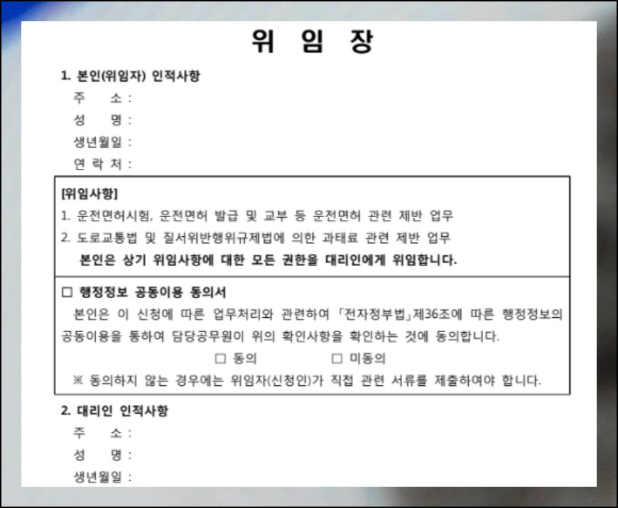 본인이 직접 가기 어려운 상황이라면 대리인을 통한 신청도 됩니다. 신청자 본인과 대리인 양쪽의 신분증이 모두 필요해요. 위임장도 꼭 준비해야 합니다. 작성 방법이 어렵다면 첨부된 양식을 활용하세요.