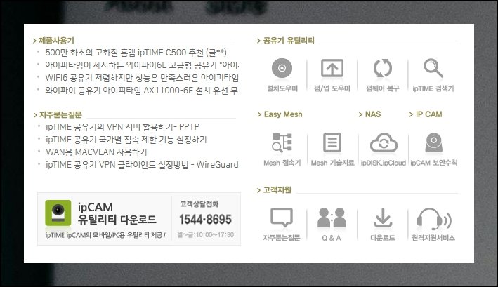 iptime 웹사이트 메인 화면 우측 하단 영역에서 설치도우미 메뉴를 찾을 수 있습니다. 이 유틸리티를 활용하면 누구나 간편하게 공유기 네트워크 환경을 구축할 수 있어요. 사용 설명서도 함께 제공되니 미리 다운로드해두시는 걸 추천드립니다.