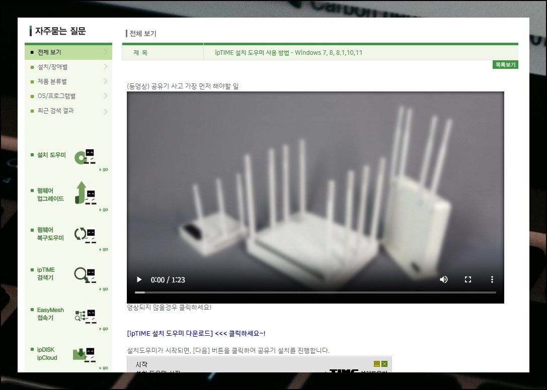 iptime 웹사이트 메인 화면 우측 하단 영역에서 설치도우미 메뉴를 찾을 수 있습니다. 이 유틸리티를 활용하면 누구나 간편하게 공유기 네트워크 환경을 구축할 수 있어요. 사용 설명서도 함께 제공되니 미리 다운로드해두시는 걸 추천드립니다.