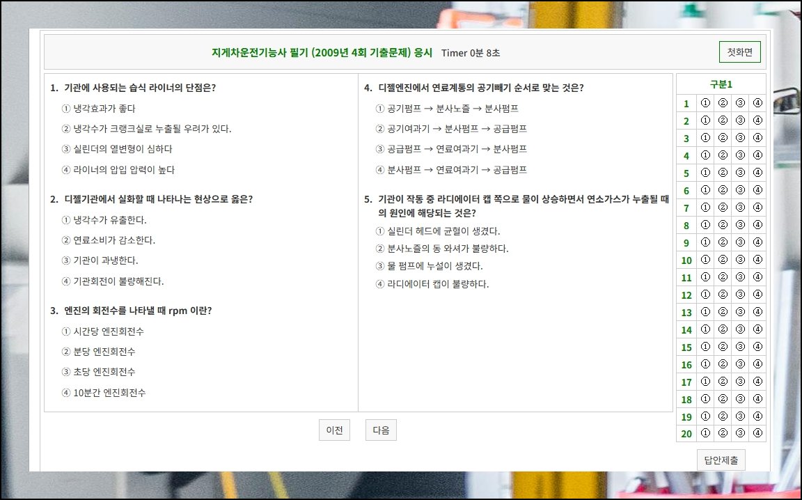 운전기능사 필기 준비 자료를 무료로 열람할 수 있는 웹사이트가 많아졌어요. 건시스템이나 CBT 전자문제집이 대표적이죠. 건시스템은 파일 제공을 넘어 실제 응시 환경을 재현한 모의 평가도 운영하고 있습니다. 저장한 자료로 개념을 잡고 웹 모의평가로 감각을 끌어올리는 방식이 효율적이에요.