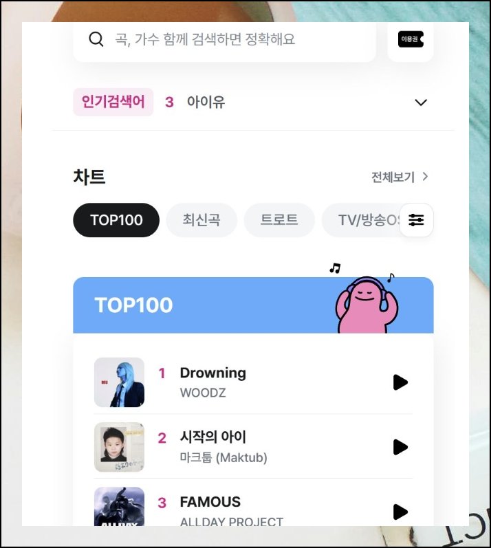 화제곡, 신보, 트로트 등 장르별로 분류된 목록을 탐색할 수 있는 공간이 펼쳐집니다. lg 유플러스 독자 인기 차트 방식이 반영된 것으로 보여요. 서두르지 말고 본인 스타일에 맞는 컬러링 곡을 골라보세요.