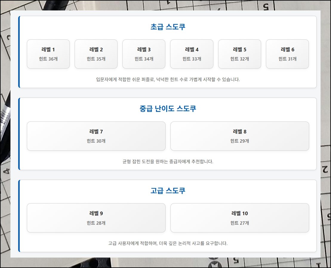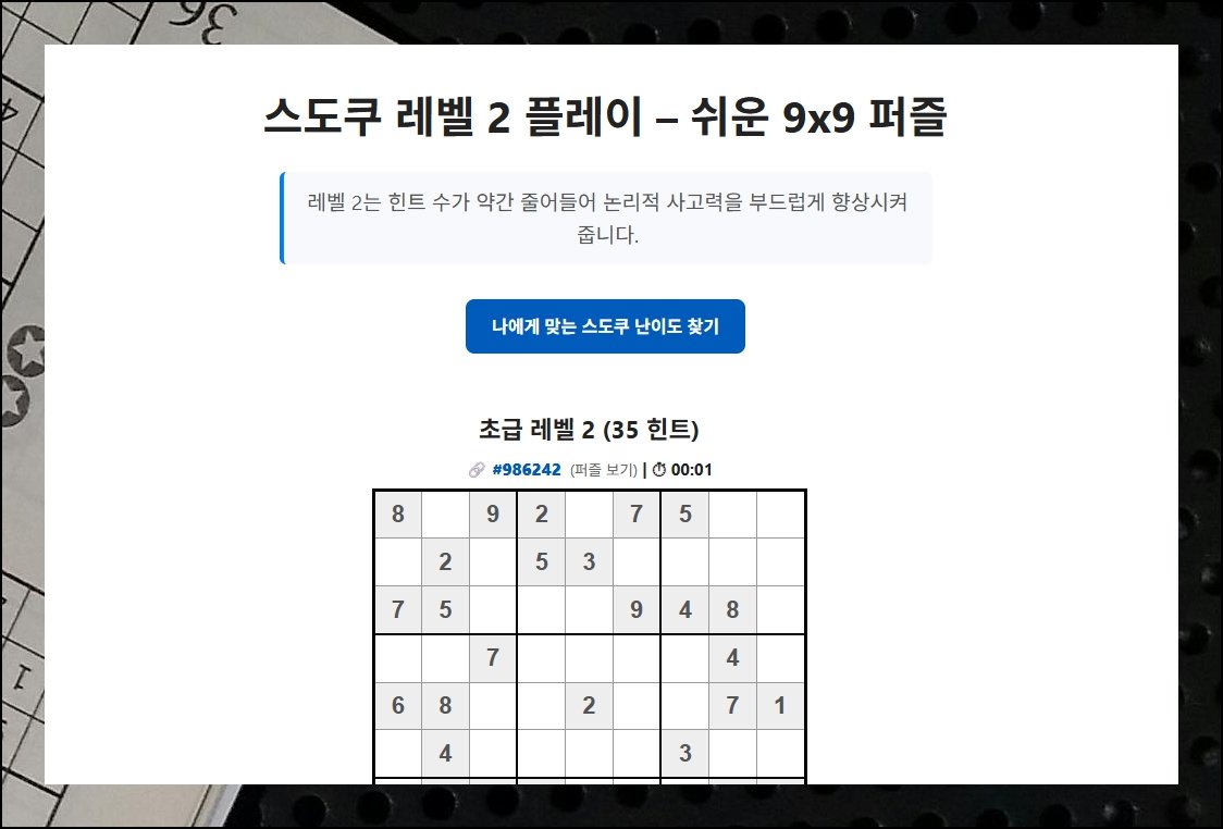 머리를 쓰는 취미를 찾고 계신다면 숫자 퍼즐만 한 게 없어요. 특별한 준비물 없이 화면 앞에 앉기만 하면 바로 시작할 수 있거든요. 다만 막상 해보려고 하면 어떤 난이도의 문제가 나한테 맞는지, 어디서 골라 풀어야 하는지 막막할 때가 있습니다. 그럴 때 스도쿠 문제 모음 사이트 하나만 알아두면 고민이 깔끔하게 정리돼요.