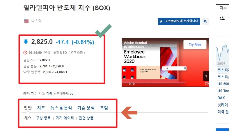 인터넷으로 미국 필라델피아 반도체 지수 제대로 파악하는 방법 따라하기.