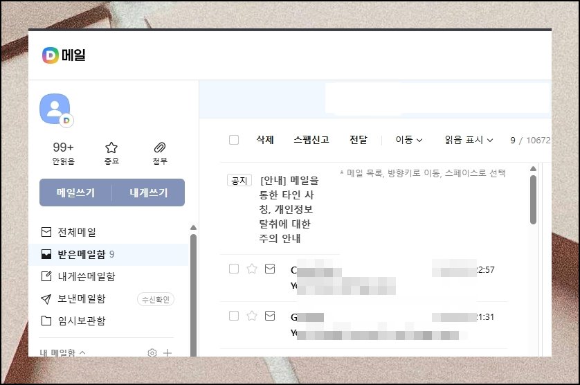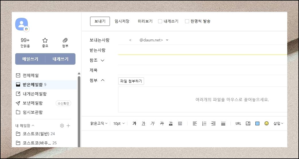 다음메일 화면을 열어보세요. 왼편 목록 중 "내게쓰기"를 선택하면 됩니다. 클릭 한 번으로 본인의 이메일 주소가 곧바로 나타나요. 추가 작업 없이 순식간에 확인이 끝납니다. 다음메일 주소를 급하게 알아봐야 할 때 이보다 간편한 방법은 없어요.