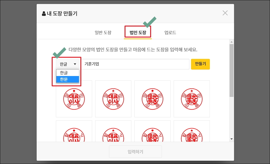 내 마음에 맞는 인터넷 도장만들기 안내.