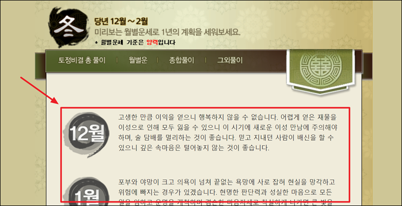 월별운세를 통해 이번 달인 2021년 4월에 들어오는 운에 대해서 확인하는 것도 가능해요.