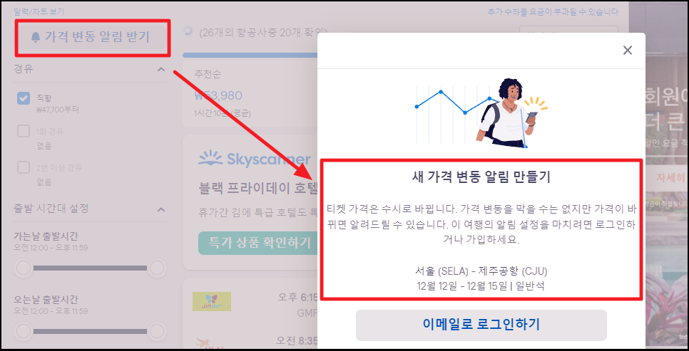 알림에 기다리다가 알림이 오면 그때 항공권 예매를 진행하면 돼요.