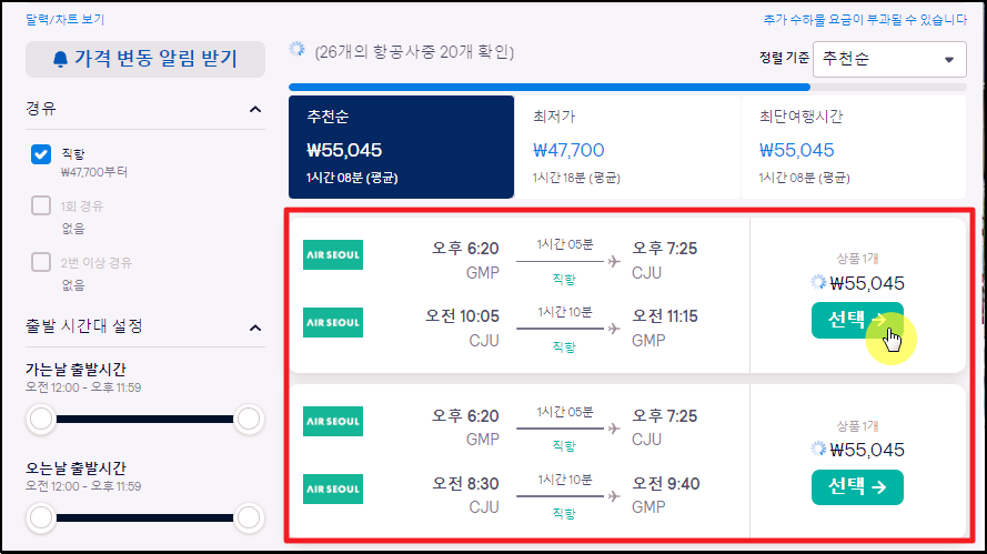 ▲ 제가 알려드린 방법을 따라 했음에도 불구하고 싸게 나온 제주도 항공권을 찾지 못하는 경우도 있습니다.