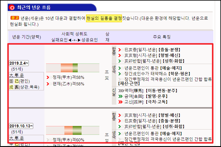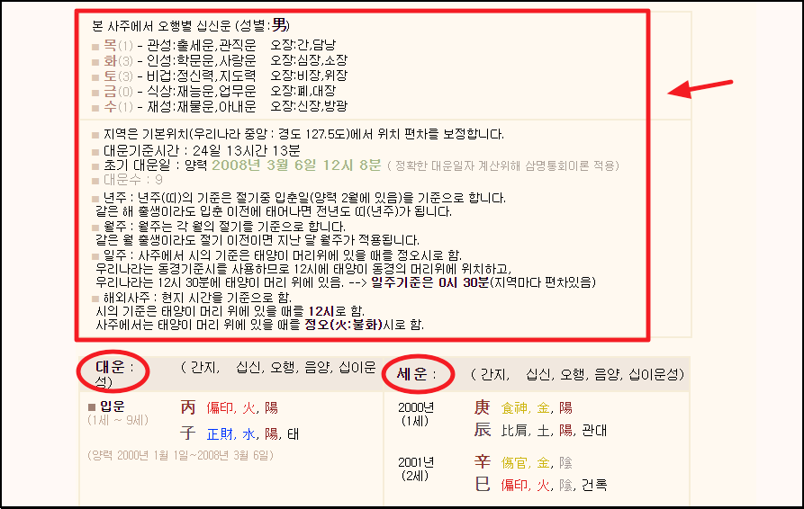 ▲ 일반적으로 만세력을 통해 자신의 대운, 연운을 알아보는 경우가 많습니다.
