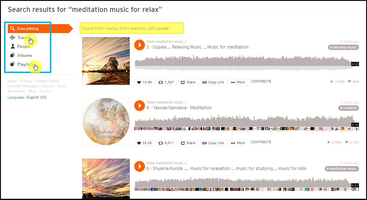 ▲ 검색 결과가 나왔습니다. 500개 이상의 명상음악 리스트가 발견되었는데요.