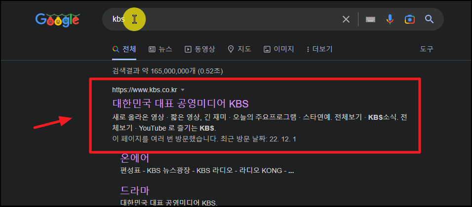 ▲ 그럼 kbs2 채널을 실시간으로 보기 위해 어떻게 하는지 알려 드리겠습니다. 일단 kbs 공식 홈페이지에 접속해야해요.