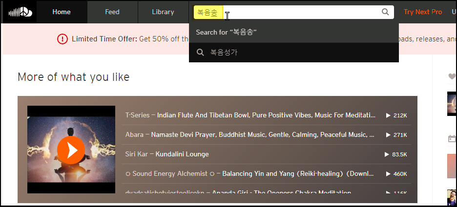 제가 복음송 연속듣기를 할 떄 이용하는 사이트는 사운드 클라우드입니다.