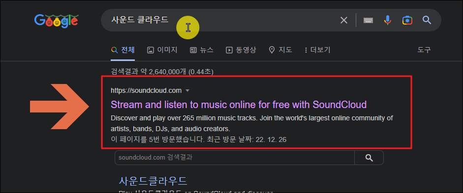 사운드 클라우드는 해외 사이트이기 때문에 영어로 되어 있습니다.