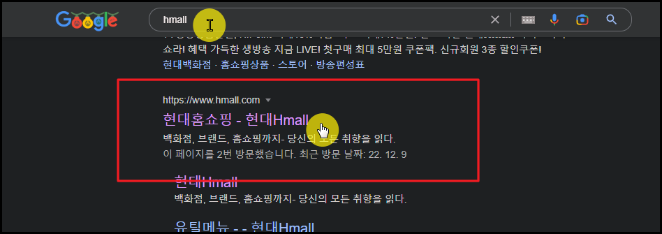 ▲ 그럼 현대홈쇼핑 공식 홈페이지에 접속하여 어떻게 방송편성표 서비스를 이용하는지 알려드리겠습니다. 인터넷 브라우저 주소창에 hmall 닷컴을 입력하여 접속하면 됩니다.