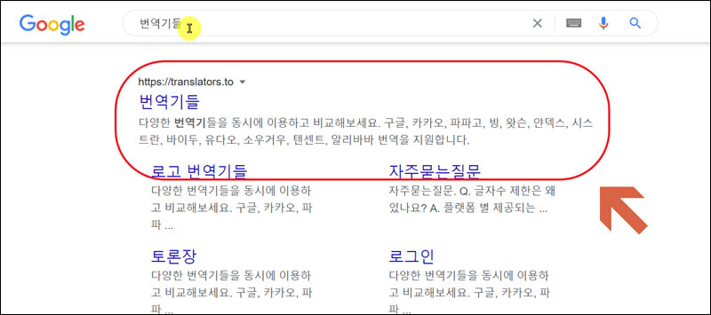 두 번째 변환기 프로그램은 문장 위주로 한글 영어 변환을 도와주는 것인데요. 한 번 입력으로 여러 번역기 프로그램의 서비스를 동시에 사용할 수 있는 "번역기들" 사이트를 이용해 볼게요.