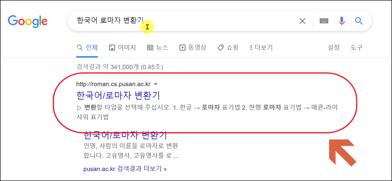 첫 번째는 인명을 포함한 여러 가지 단어를 영어로 바꾸어 주는 변환기 프로그램이에요. 바로 한국어 로마자 변환기 인데요. 프로그램을 설치할 필요가 없고, 사이트에서 바로 이용할 수 있어요.