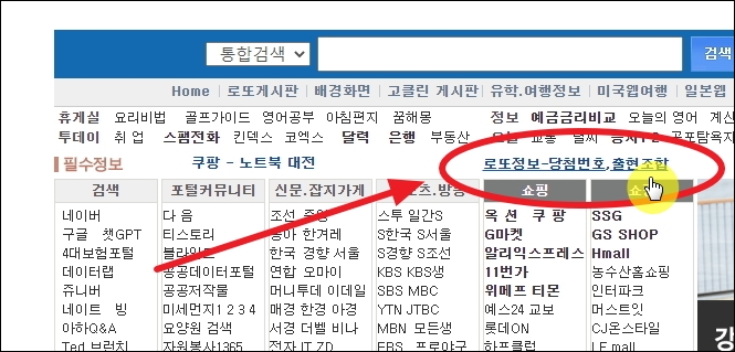 사이트에 접속하면 메뉴에 있는 [로또정보 - 당첨번호, 출현조합]을 찾아서 클릭해 주세요. 사이트 메인화면을 보면 꿈해몽, 아침편지, 영어공부, 요리비법 등 생활 속에서 찾게 되는 실용 정보와 서비스가 많이 있습니다.