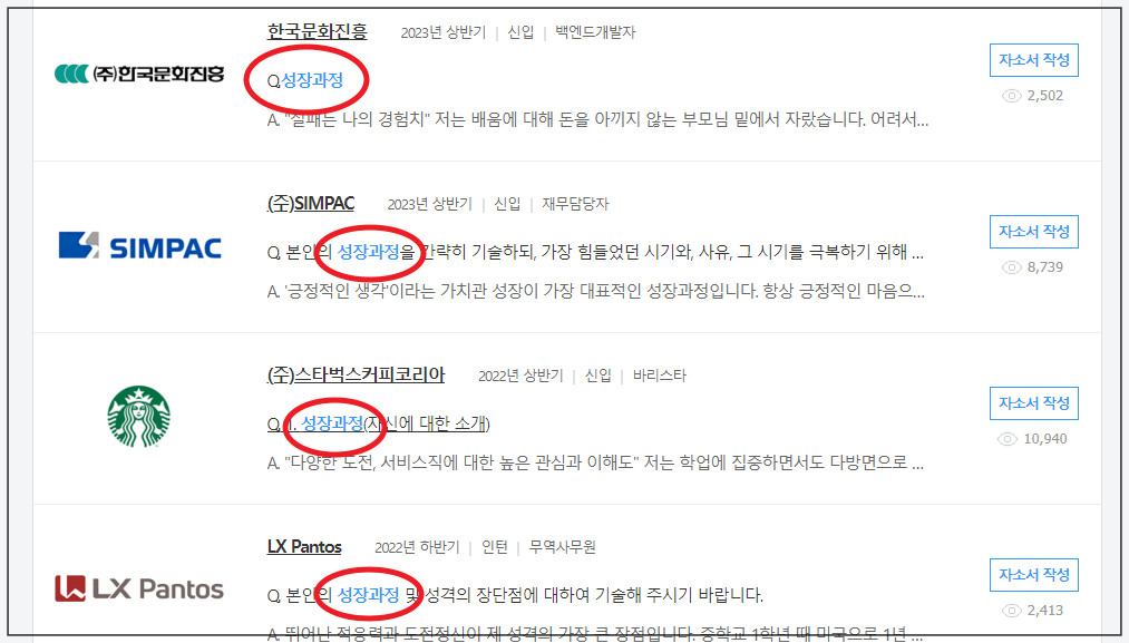 합격자에 자기소개서 성장과정 잘쓴예를 참고해 보세요. 그대로 똑같이 쓰라는 얘기는 아니고, 작성하는 노하우를 배우라는 의미입니다. 이러한 기술적인 부분도 취업에 있어서 생각보다 큰 부분을 차지하기 때문입니다.