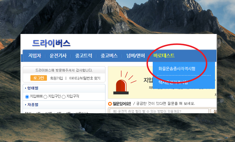 2. 그럼 어떻게 기출문제 서비스를 이용하는지 알려 드릴게요. 일단 해당 서비스는 무료로 사용할 수 있습니다. 드라이버스 사이트를 이용하면 되는데요. 이곳은 화물 운송 운전 관련 일을 하는 분들에게 도움이 되는 정보나 서비스가 많이 있습니다.