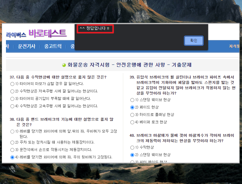 7. 과목을 선택하면 바로 문제를 풀 수 있는 화면이 나타납니다. 수백 개의 문항이 나타나는데요. 답이라고 생각하는 선택지를 클릭하면 바로 정답 여부를 확인할 수 있어서 정말 좋습니다.